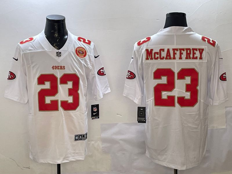 Men 2025 Nike San Francisco 49ers #23 Mccaffrey red gold 5th generation Limited NFL Jersey 005