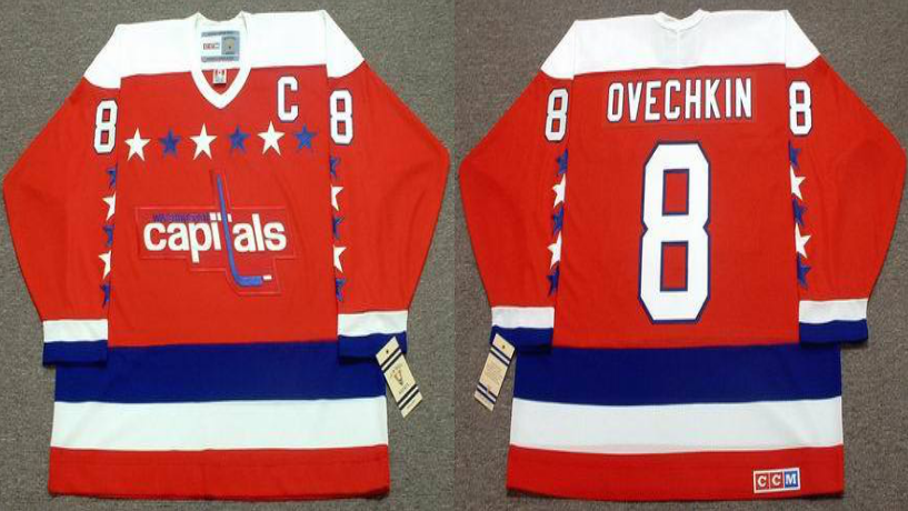 Men Washington Capitals #8 Ovechkin Red NHL 2021 Adidas Pullover Hoodie Jersey
